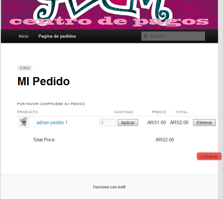 2- En tu página de pago aparece tu nombre y número de pedido. Ahí se indicará el monto a pagar.